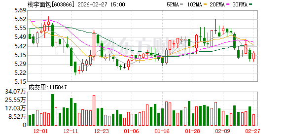 何止是近期股价表现低迷,自2020年9月初创下上市新高后,桃李面包的股价便逐级而下。截至2026年2月26日,公司股价累计跌幅达到77.68%,即跌幅近八成。