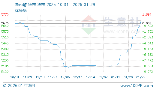 据生意社监测,异丙醇01月29日最新价格5716.67元/吨,最近5天上涨3.31%,10天上涨6.85%,15天上涨7.86%,30天上涨10.43%。