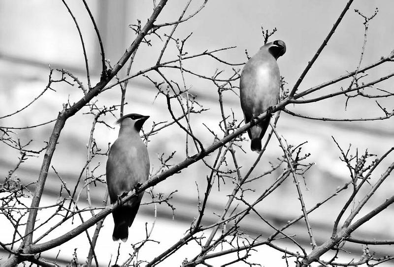 太平鸟(左)和小太平鸟(右)。