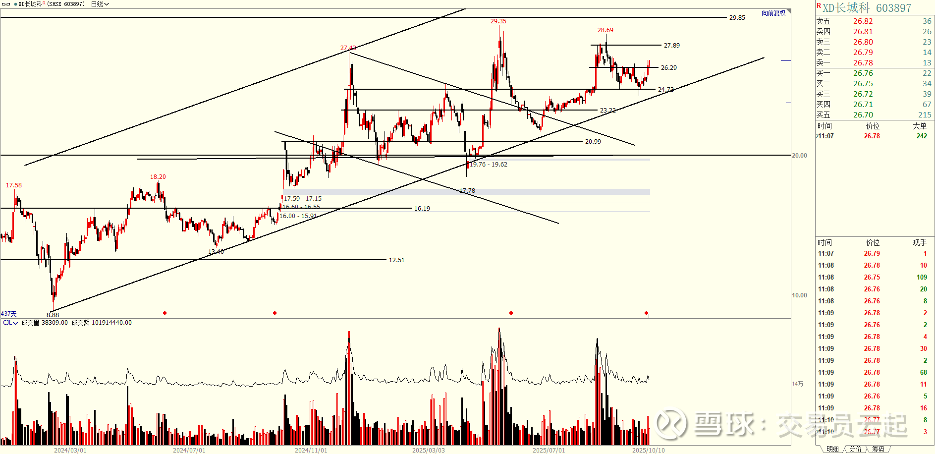 回复@信马挽青丝: $长城科技(SH603897)$ 沿着上升通道震荡上行;当前突破26.3的压力位,接下来3个交易日能守在26.3附近震荡的话,进一步看涨至30,大波段目标35