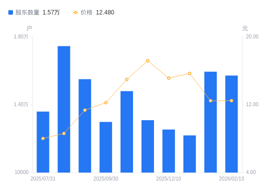 近一年(2024年12月31日至2025年12月19日),中持股份A股股东户数从1.63万户,减低至1.22万户,降幅25.38%,区间股价上涨142.13%。