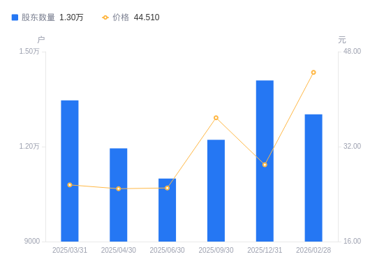 近一年(2024年12月31日至2025年12月31日),长源东谷A股股东户数从1.34万户,增加至1.41万户,增幅5.38%,区间股价上涨56.78%。