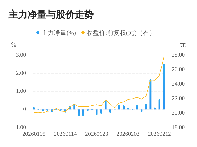 克来机电(603960)02月13日主力(dde大单净额)净流入1.81亿元,涨跌幅为10.00%,主力净量(dde大单净额/流通股)为2.51%,两市排名21/5190。
