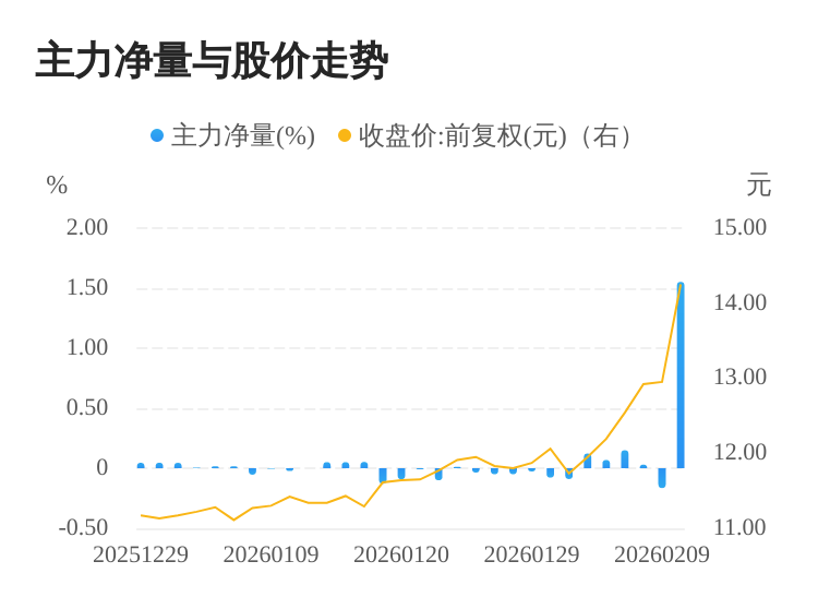 醋化股份(603968)02月10日主力(dde大单净额)净流入4457.20万元,涨跌幅为10.04%,主力净量(dde大单净额/流通股)为1.55%,两市排名40/5189。