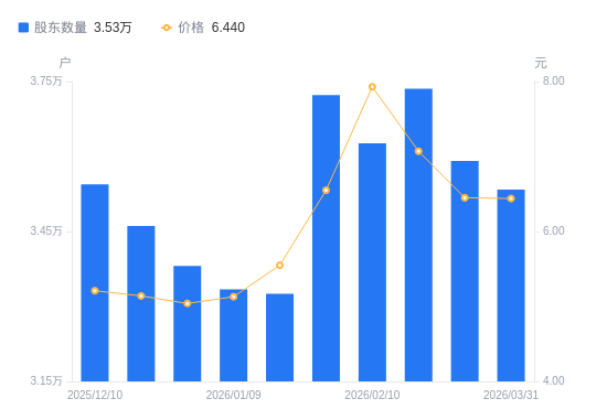近一年(2025年3月31日至2026年3月31日),吉华集团A股股东户数从2.84万户,增加至3.53万户,增幅24.54%,区间股价上涨42.16%。