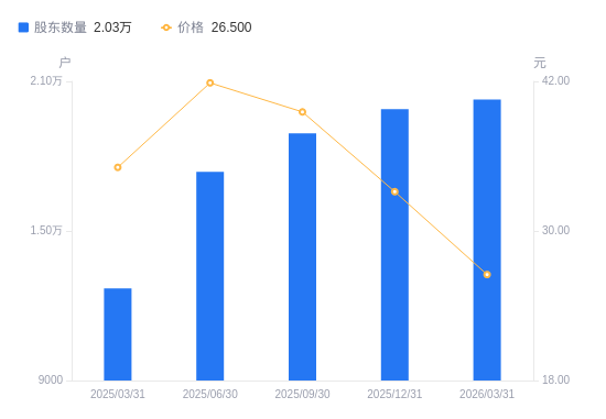 近一年(2025年3月31日至2026年3月31日),丸美生物A股股东户数从1.27万户,增加至2.03万户,增幅59.73%,区间股价下跌25.23%。
