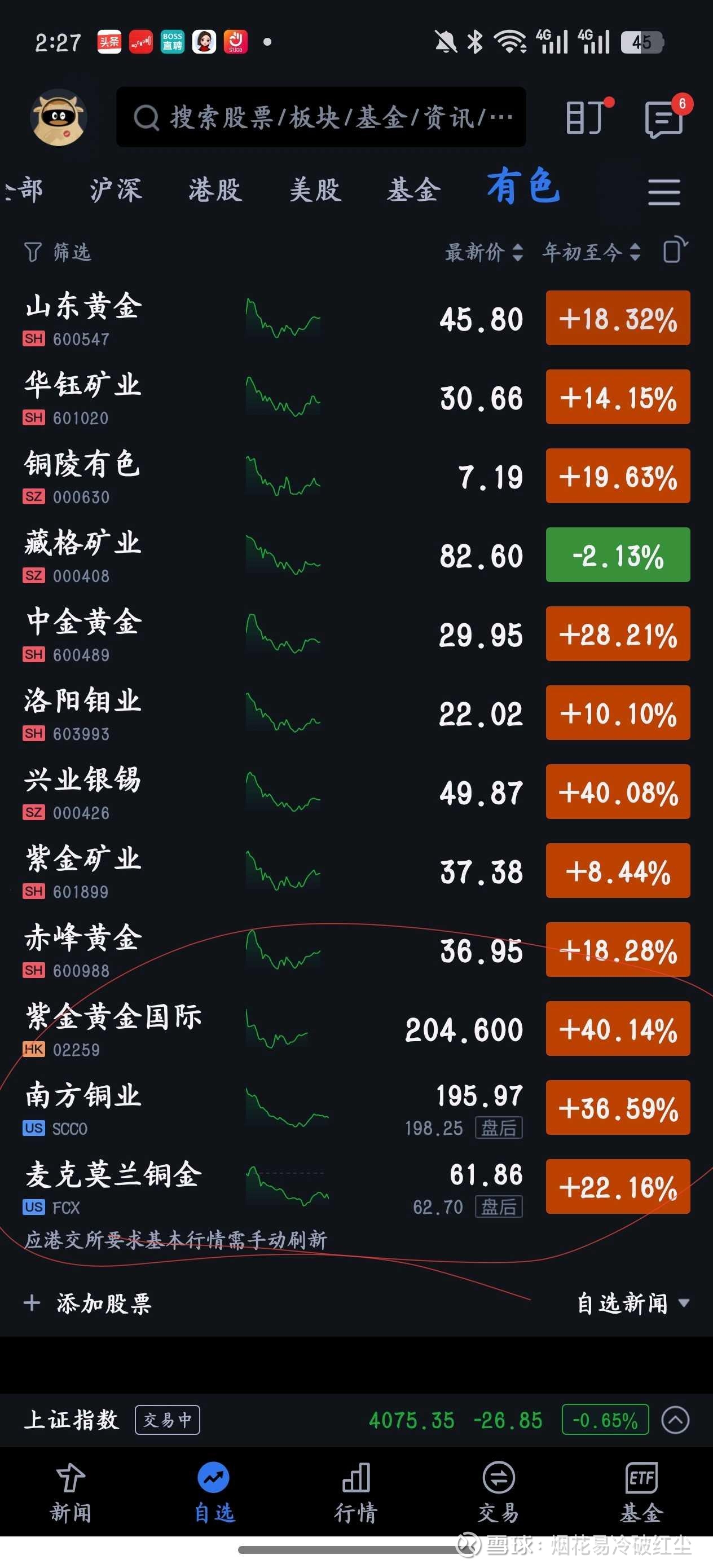 ,看看美股顶着这么高的估值和产量指引下降。年初至今涨幅远高于紫金,洛钼,就知道到底怎么回事了。
