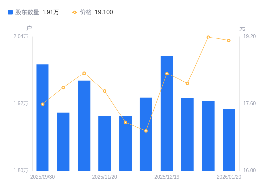 近一年(2025年1月20日至2026年1月20日),甬金股份A股股东户数从1.51万户,增加至1.91万户,增幅26.21%,区间股价上涨8.32%。