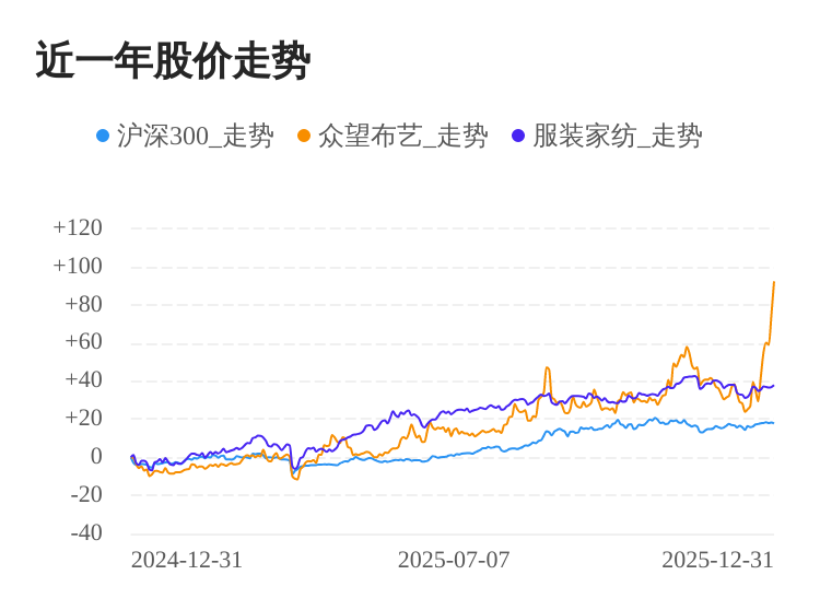 众望布艺股份有限公司的主营业务是中高档装饰面料及制品的研发、设计、生产与销售。公司的主要产品是装饰面料。公司多次获得年度纺织服装企业综合竞争力500强等荣誉称号,并在2024年获评浙江省“未来工厂”。