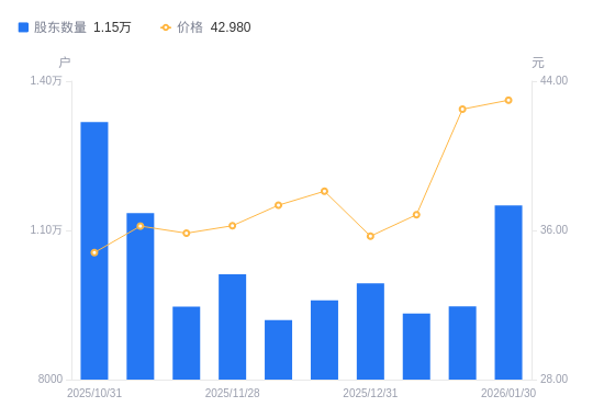 2月3日消息,数据显示,截至2026年1月30日,共创草坪A股股东总户数为1.15万户,较上期(2026年1月20日)增加2031户,增幅21.44%。公司最新A股总股本为4.03亿股,其中流通A股4.01亿股,户均持有流通A股数量为3.49万股,较上期减少7483.13股,降幅17.66%;户均持流通A股市值150万元,较上期减少30.13万元,降幅16.73%。