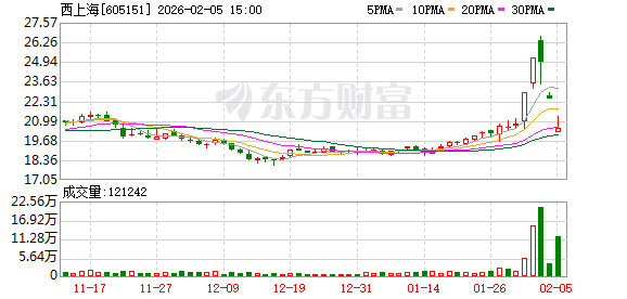 2月5日,西上海(605151)发布公告,公司股票在2026年2月3日、4日及5日连续3个交易日,收盘价格跌幅偏离值累计超过20%。