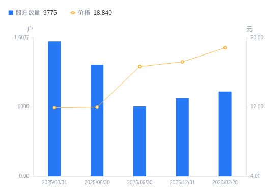 3月19日消息,数据显示,截至2025年12月31日,西大门A股股东总户数为9033户,较上期(2025年9月30日)增加981户,增幅12.18%。公司最新A股总股本为1.91亿股,其中流通A股1.9亿股,户均持有流通A股数量为2.1万股,较上期减少2561.75股,降幅10.86%;户均持流通A股市值36.17万元,较上期减少3.13万元,降幅7.97%。