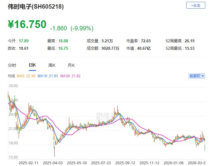 格隆汇3月23日|伟时电子(605218.SH)跌停报16.75元,股价创去年4月10日以来近一年新低。伟时电子公布,因自身资金需求,渡边庸一先生计划通过集中竞价及大宗交易方式减持公司股份不超过728.44万股,即不超过公司总股本的3%。减持期间为自本公告披露之日起15个交易日后的三个月内。(格隆汇)