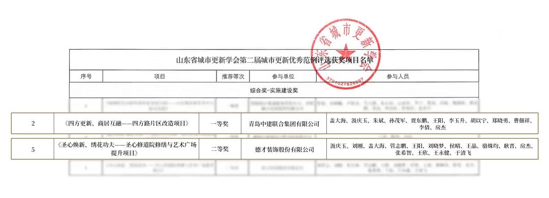 近日,山东省城市更新学会第二届城市更新优秀范例评审结果揭晓,由德才股份(605287)城市更新公司组织施工的四方路片区改造项目、圣心修道院修缮与艺术广场提升项目凭借卓越的实施建设能力脱颖而出,分别荣获综合类-实施建设奖一等奖与二等奖,彰显了公司在城市更新领域的深厚积淀。