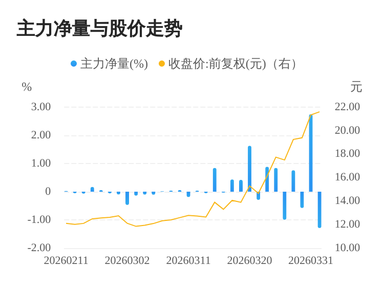 该股今日主力净量为负,且值较大,表明主力大幅流出,主动卖出明显多于主动买入。与此同时,今日换手率较高,主力抛售的嫌疑较大。投顾建议:投资者短期宜合理控制仓位,谨慎为佳。