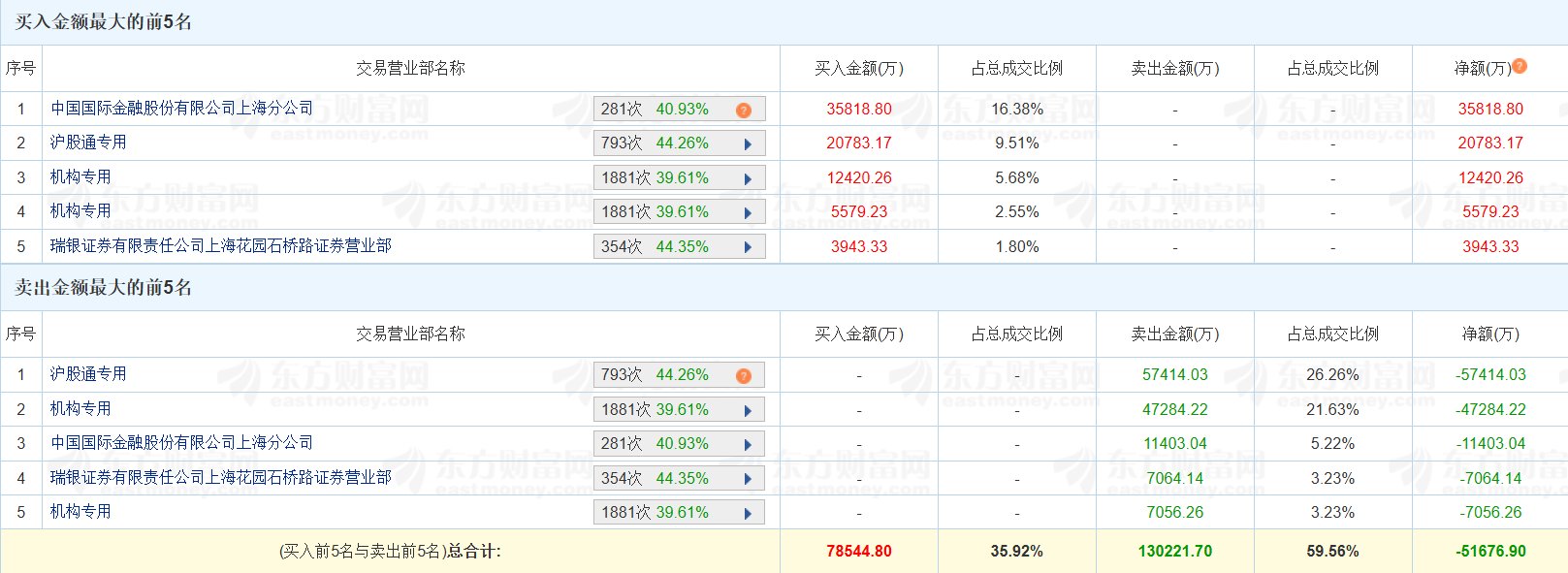 东鹏饮料(605499.SH)今日跌停,股价创逾一年新低,换手率2.01%,成交额21.86亿元。龙虎榜数据显示,沪股通买入2.08亿元,卖出5.74亿元,净卖出3.66亿元;机构买入1.8亿元,卖出5.43亿元,净卖出3.63亿元。上榜席位全天买入7.85亿元,卖出13.02亿元,合计净卖出5.17亿元。(格隆汇)