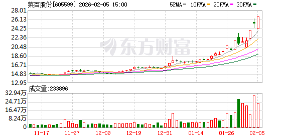 2月5日,菜百股份(605599)发布公告,公司股票在2026年2月3日、4日及5日连续3个交易日,收盘价格涨幅偏离值累计达到20%。