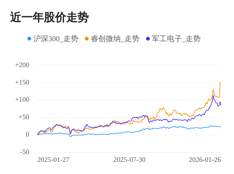 01月26日,睿创微纳股价继续上涨。截至今日收盘,睿创微纳上涨1.34%,收盘价为124.96元,盘中股价最高触及132.00元,股价创历史新高。