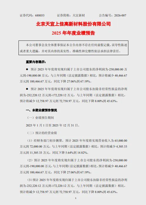 1月30日,天宜新材(维权)(688033)发布2025年业绩预告。