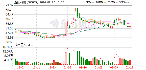 2月27日,当虹科技(688039)发布公告,2025年度业绩快报显示,公司实现营业总收入3.49亿元,较上年同期增长13.71%。归母净利润约亏损8866万元,较上年同期亏损减少1354万元,同比减亏13.25%。