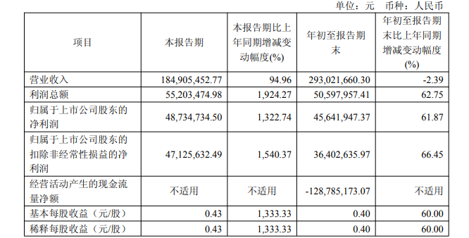 10月27日,德林海(688069.SH)发布2025年第三季度报告,第三季度营收为1.85亿元,同比增长94.96%;归属于上市公司股东的净利润为4873.47万元,同比增长1322.74%。前三季度营收为2.93亿元,同比下降2.39%;归属于上市公司股东的净利润为4564.19万元,同比增长61.87%。