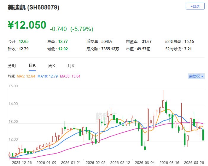 美迪凯(688079.SH)现跌5.79%报12.05元。美迪凯公布2025年年度报告,期内公司实现营收6.64亿元,同比增长36.72%;归属于上市公司股东的净亏损1.57亿元。(格隆汇)