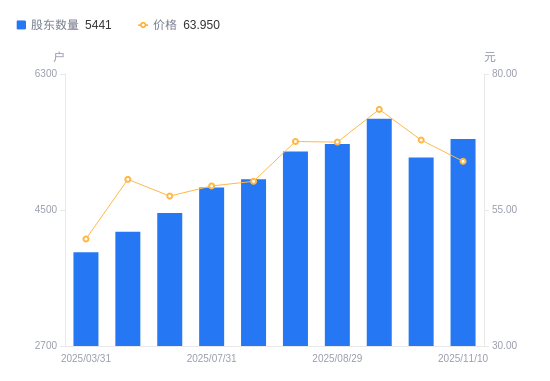 | 日期 | A股户数(户) | 流通A股户均持股数(股) | 户均持股市值(万元) |