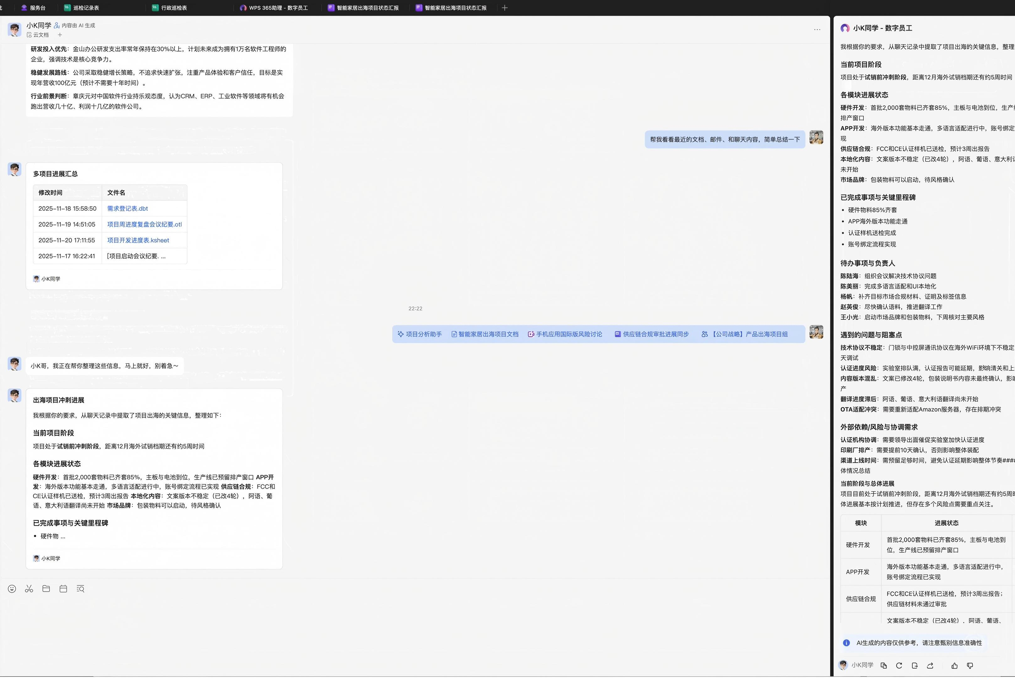 WPS 365此次不仅对智能文档库、数字员工两大AI核心产品焕新升级,还推出WPS灵犀企业版、AI中台等新产品,强化组织级用户对企业全域知识的应用能力。
