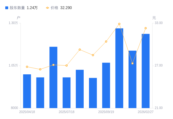 近一年(2025年3月20日至2026年2月27日),清溢光电A股股东户数从9674户,增加至1.24万户,增幅27.83%,区间股价上涨19.54%。