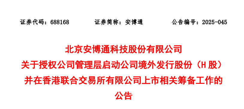 来自北京海淀区的A股上市公司安博通(6881887.SH)发布公告称,为加快构建公司国内国际双循环格局,推进公司海外战略布局,进一步提升公司品牌形象及知名度,提高公司的资本实力和综合竞争力,根据公司总体发展战略及运营需要,公司拟在境外发行股份(H股)并在香港联合交易所有限公司上市。公司董事会同意授权公司管理层启动本次H股上市的前期筹备工作,授权期限为自董事会审议通过之日起12个月内。公司计划与相关中介机构就本次H股上市的具体推进工作进行商讨,除本次董事会审议通过的相关议案外,其他关于本次H股上市的具体细节尚未最终确定。