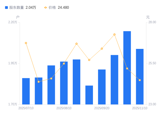 近一年(2024年12月31日至2025年11月10日),广大特材A股股东户数从8907户,增加至2.04万户,增幅128.85%,区间股价上涨57.58%。