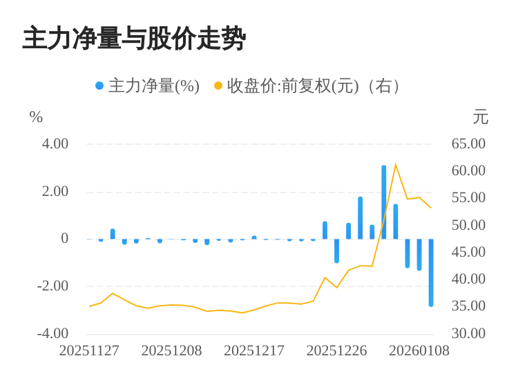 该股今日主力净量为负,且值较大,表明主力大幅流出,主动卖出明显多于主动买入。与此同时,今日换手率较高,主力抛售的嫌疑较大。投顾建议:投资者短期宜合理控制仓位,谨慎为佳。
