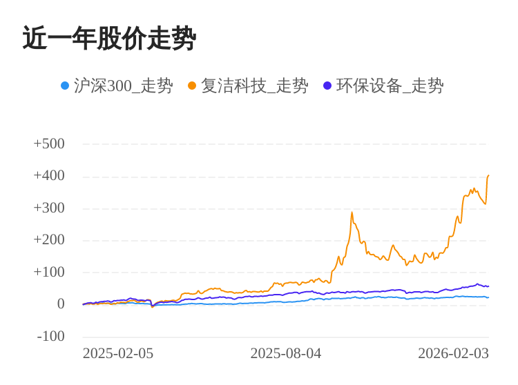 02月03日,复洁科技股价继续上涨。截至今日收盘,复洁科技上涨1.67%,收盘价为43.25元,盘中股价最高触及43.77元,股价创历史新高。