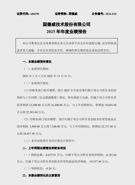 1月29日,固德威(688390)发布2025年度业绩预告。