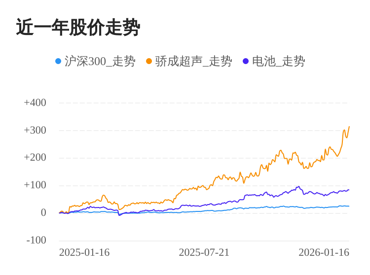 01月16日,骄成超声股价大涨。截至今日收盘,骄成超声上涨5.61%,收盘价为152.30元,收盘价创历史新高。