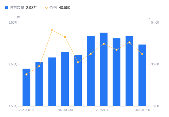 近一年(2025年2月28日至2026年1月30日),凌云光A股股东户数从2.37万户,增加至2.98万户,增幅25.52%,区间股价上涨7.75%。