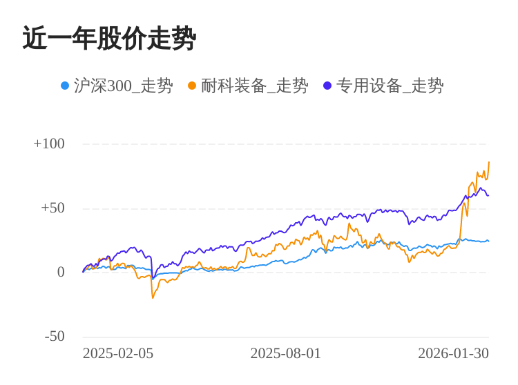01月30日,耐科装备股价大涨。截至今日收盘,耐科装备上涨7.53%,收盘价为43.85元,收盘价创历史新高。