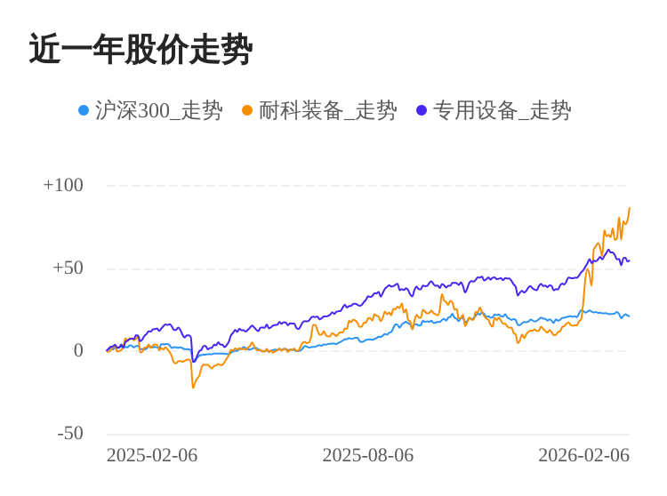 02月06日,耐科装备股价继续上涨。截至今日收盘,耐科装备上涨4.31%,收盘价为45.27元,盘中股价最高触及46.86元,股价创历史新高。