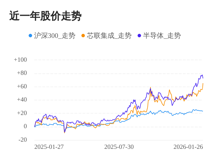 近一年公司股价累计上涨62.61%,同期沪深300指数上涨22.81%。
