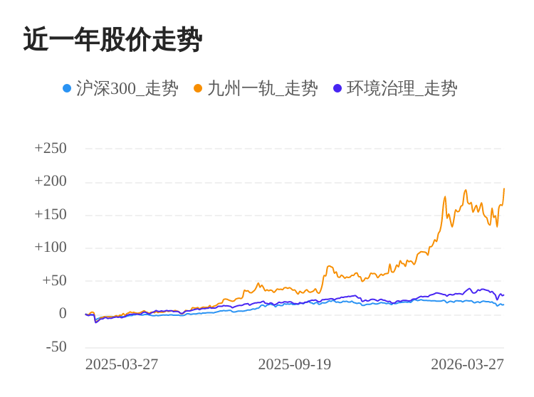 北京九州一轨环境科技股份有限公司的主营业务是轨道交通减振降噪技术研发、产品制造、工程设计、市场推广、测试咨询以及轨道运维管理工程技术服务。公司的主要产品是钢弹簧浮置道床减振系统、预制式钢弹簧浮置板、隔离式高弹性减振垫、聚氨酯减振垫等噪声振动物理防治手段。公司多次获得省部级和产业协会奖项,包括“北京市科学技术奖一等奖”“天津市科学技术进步奖二等奖”“中国环境保护产业协会环境技术进步一等奖”等。