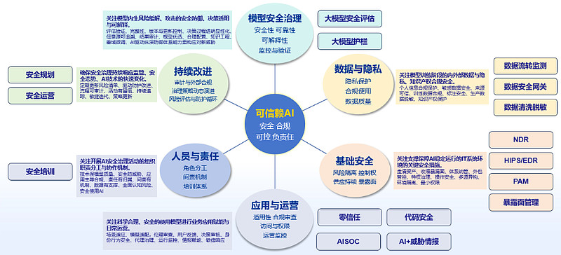 首先,在治理框架方面,奇安信专家认为,企业推动AI安全治理,首先要把AI安全纳入企业整体战略,而不是单点技术问题,同时遵循“透明、可控、负责、合规、以人为本”的治理原则,帮助政企机构建立智能体安全管理制度,明确权限分级、数据加密、操作审计等核心要求,划定AI行为的“安全红线”。