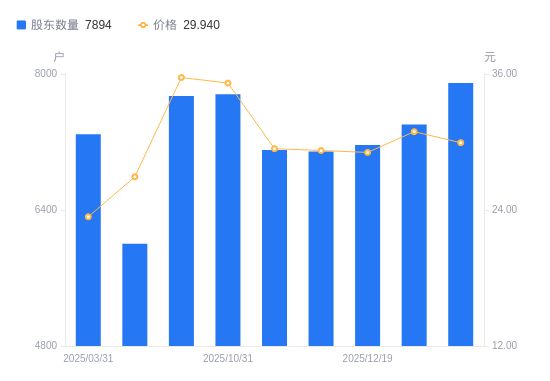 近一年(2025年3月31日至2026年1月20日),吉贝尔A股股东户数从7292户,增加至7894户,增幅8.26%,区间股价上涨28.39%。