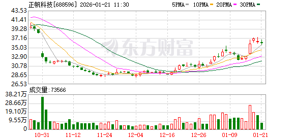 截至1月21日9点41分,正帆科技的股价36.29元/股,总市值107亿元,市盈率39.9。