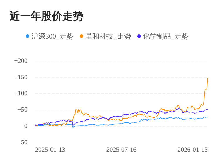 01月13日,呈和科技股价大涨。截至今日收盘,呈和科技上涨12.29%,收盘价为62.32元,收盘价创历史新高。