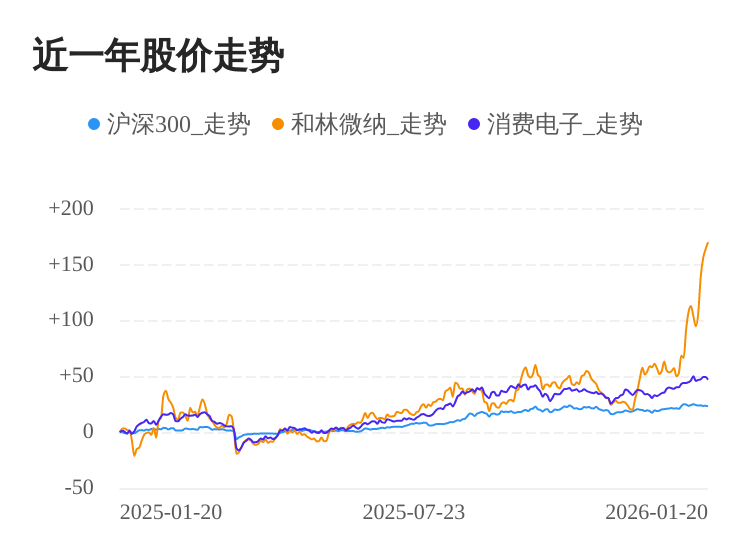 01月19日,和林微纳股价继续上涨。截至今日收盘,和林微纳上涨3.14%,收盘价为89.37元,盘中股价最高触及94.00元,股价创历史新高。