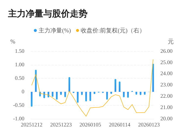 金迪克01月26日主力(dde大单净额)净流入3135.05万元,涨跌幅为19.98%,主力净量(dde大单净额/流通股)为1.04%,两市排名95/5183。
