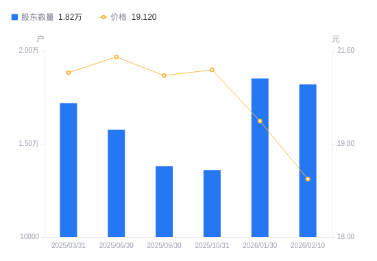 2月12日消息,数据显示,截至2026年1月30日,金天钛业A股股东总户数为1.85万户,较上期(2025年10月31日)增加4922户,增幅36.21%。公司最新A股总股本为4.62亿股,其中流通A股2.33亿股,户均持有流通A股数量为1.26万股,较上期增加6455.73股,增幅105.40%;户均持流通A股市值25.46万元,较上期增加12.46万元,增幅95.82%。