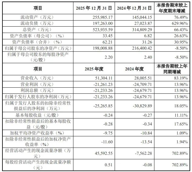 在此基础上,综合考虑业务扩张的规模效应、在手订单、产品成熟度提高、研发商业化成效等因素,公司预计2026年一季度营业收入同比呈快速增长趋势,预计增幅为235.35%至 294.53%。同时,扣除非经常性损益后归属于母公司所有者的净利润亏损同比收窄,预计减亏幅度为15.53%至 27.60%,经营业绩不断改善。