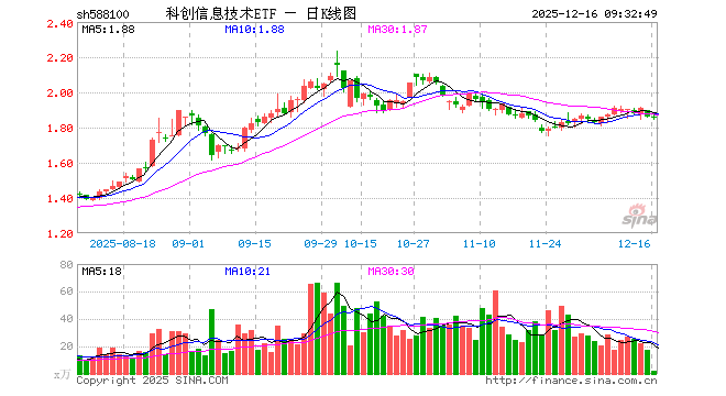 科创信息技术ETF(588100)业绩比较基准为上证科创板新一代信息技术指数收益率,管理人为嘉实基金管理有限公司,基金经理为张钟玉,成立(2022-05-18)以来回报为86.07%,近一个月回报为-0.51%。