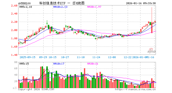 科创信息技术ETF(588100)业绩比较基准为上证科创板新一代信息技术指数收益率,管理人为嘉实基金管理有限公司,基金经理为张钟玉,成立(2022-05-18)以来回报为118.59%,近一个月回报为17.48%。